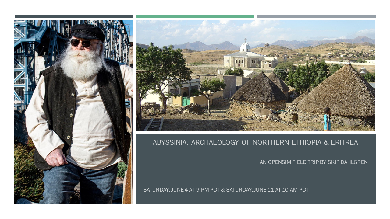 Archaeology of Northern Ethiopia & Eritrea Abyssinia, which is intended as a living museum & educational resource on the Science Circle’s OpenSim grid, is my reconstruction of ancient archaeological sites in Tigray (northern Ethiopia) & Eritrea that date from at least 1000 BCE through roughly 800 CE. I excavated at several of these sites […]