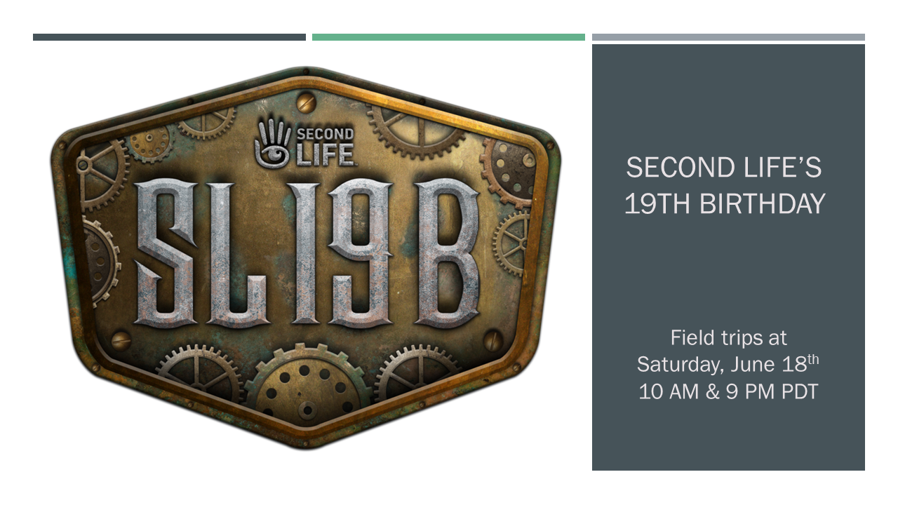 Second Life celebrates its 19th birthday on 23 June and we will be celebrating with them! SL19B regions will be open to SL residents from 16 June-5 July 2022. The theme this year will be Steampunk! Steampunk is a science fiction genre in which modern technology exists in a steam-powered 19th century setting (think […]